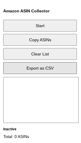 Amazon ASIN Collector is a lightweight Chrome extension that allows you to collect ASINs (Amazon Standard Identification Numbers) from Amazon listing pages.